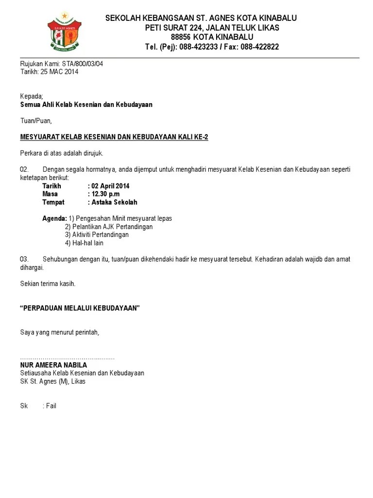 Contoh surat jemputan ke mesyuarat taklimat pdf contoh surat iringan contoh surat rasmi jemputan yb pdf. Sebagai setiausaha pibg pelbagai surat perlu dibuat sempena mesyuarat agung pibg yang akan diadakan pada hujung bulan ni cn sukacita berkongsi dengan anda . Sebagai setiausaha pibg pelbagai surat perlu dibuat. Smk di/ 08/04/08 (04) tarikh :